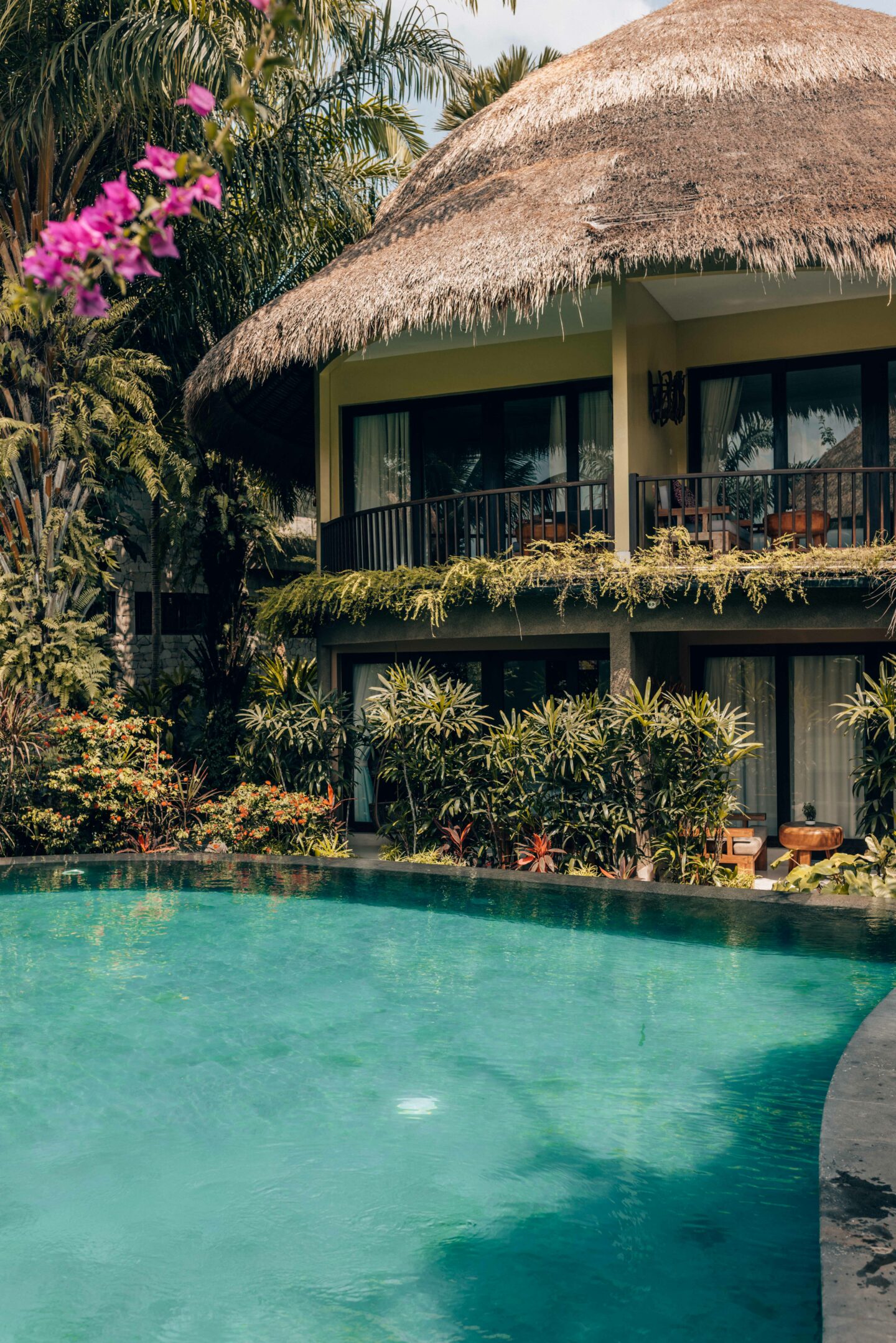 - Play with the Lush Greens: The vibrant greenery around the resort is a rich canvas for photographers. Use a polarising filter to cut through the glare and bring out the lushness of the leaves and the depth of colours in the petals. This will also help to reduce reflections in water features, making the greens pop even more against the calm blue of the pool.